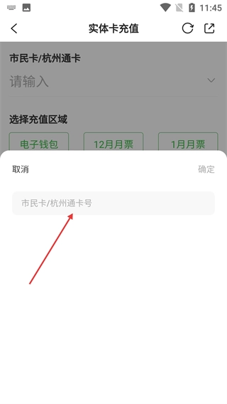 当需要填写卡号时,页面会弹出【市民卡/杭州通卡号】的输入框,你只需在这个输入框中准确输入对应的卡号,输入完成后点击确定按钮,就能继续后续的操作了。