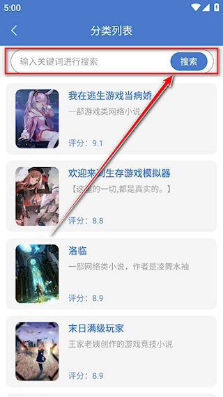 2、在搜索框中输入作品名称、作者等关键词,就能快速找到想要的书籍。