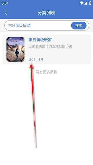 3、在搜索结果列表里选定具体的小说标题,进入该作品的详情页面。