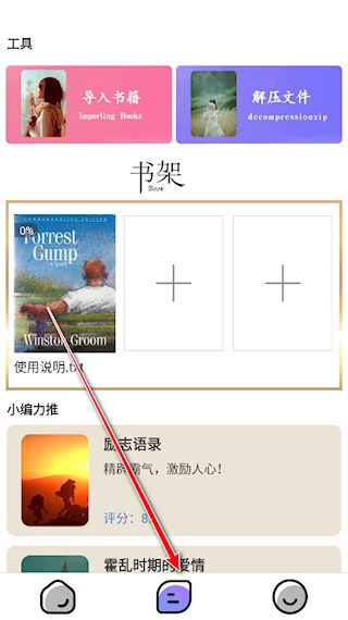 5、回到主界面后切换到功能板块,能看到本地书籍导入、文件解压等实用工具,大家可以根据自己的实际需求来选择使用。