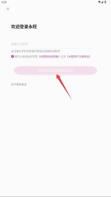 1、通过手机号进行注册登录,勾选同意相关条款后获取短信验证码,完成账号验证操作就能进入平台。