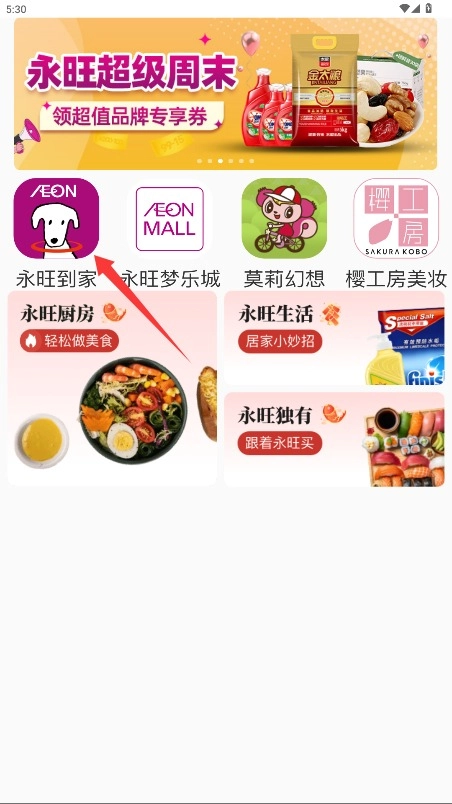 3、打开永旺到家线上商城,挑选心仪商品添加至购物车,完成结算后静候商品配送到家即可。