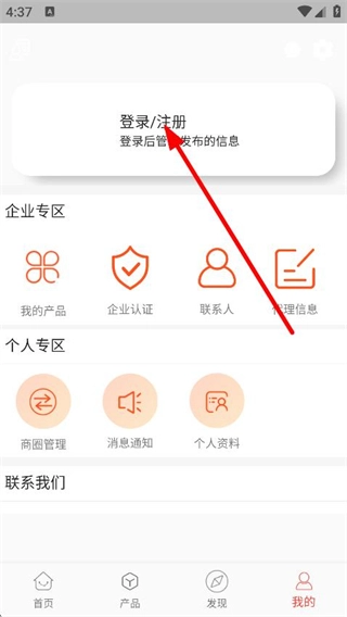 2、在个人页面,点击登录/注册,进入登录页面。