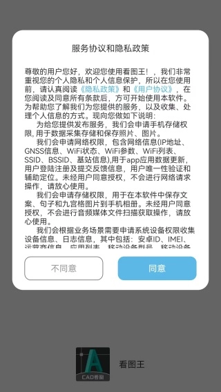 1、安装软件并进入后,若弹出服务协议与隐私协议,点击同意即可。