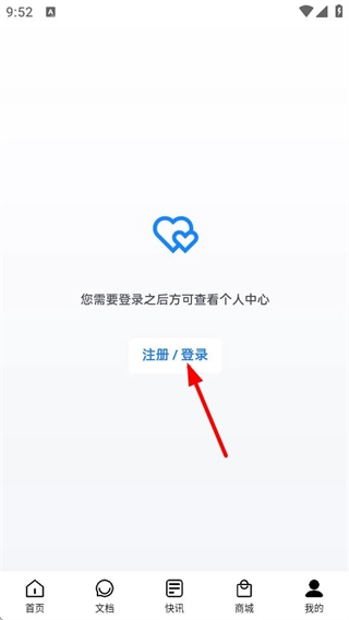 2、进入个人中心页面后,点击注册登录按钮,即可跳转至登录页面。