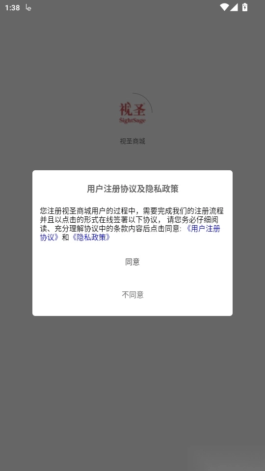 1. 打开软件后,仔细阅读“用户注册协议及隐私政策”,点击“同意”按钮进入下一步。
