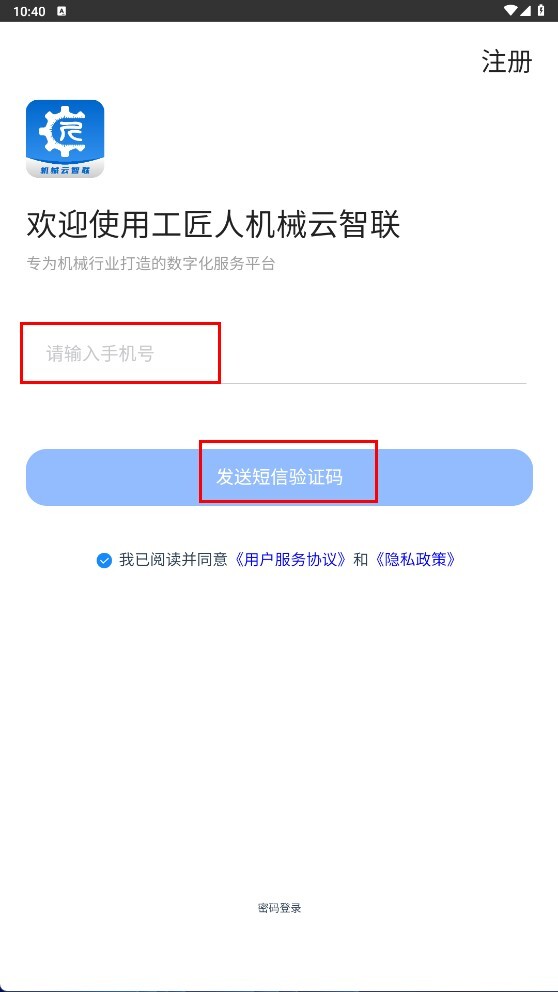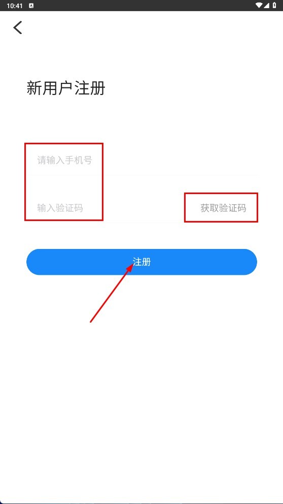 4、新用户进行注册操作时,需填写手机号码,获取并输入验证码后,点击【注册】按钮即可完成账号创建流程。