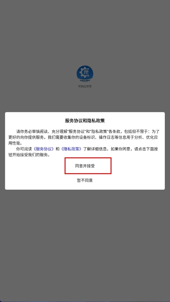 1、进入服务协议页面后,点击【同意并接受】按钮,以此确认同意平台的服务条款和隐私政策。