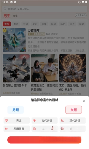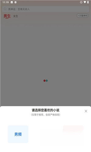 2、选择自己喜欢的小说频道。