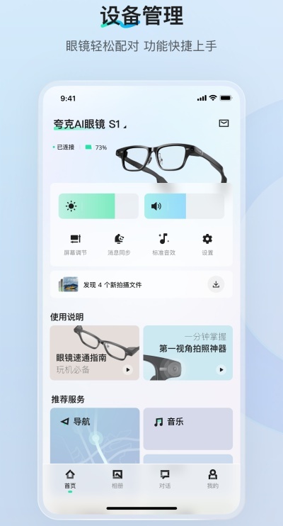 连接配对:用户可借助该功能发现并绑定智能眼镜,以便更便捷地使用夸克AI眼镜的各项功能。