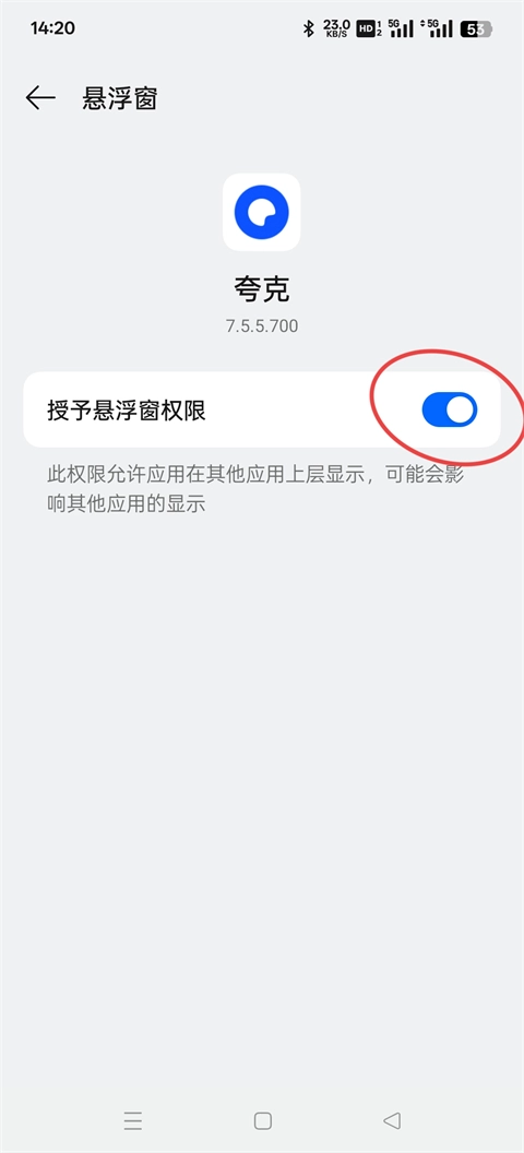 6、找到手机中的夸克,授予悬浮框的权限。