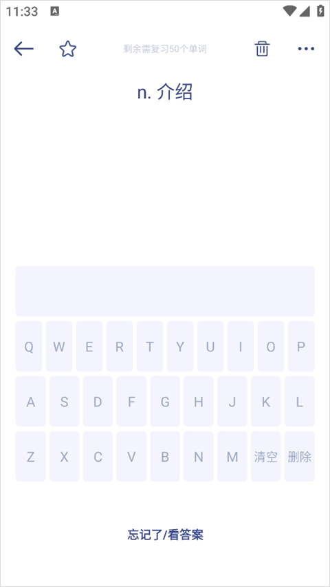 目前,收藏的单词必须依托于列表才能存在,且仅能复习在学习过程中收藏的单词。