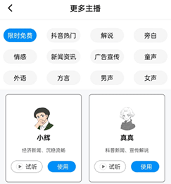 2. 素材丰富度提升:平台配备超百位AI智能发音人资源,涵盖方言、外语旁白等多元类型可供挑选。