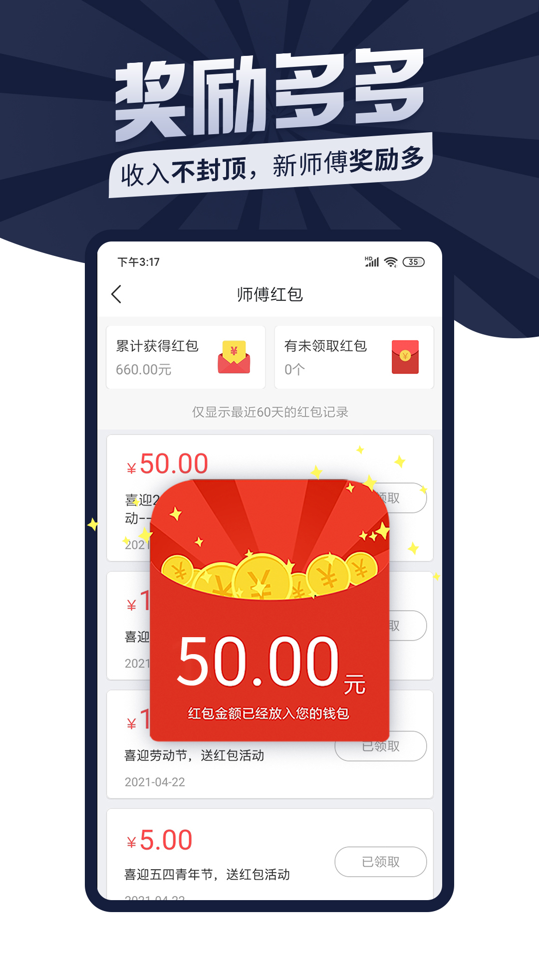 2.新师傅奖励多,入驻奖励接单奖励,红包拿不停!