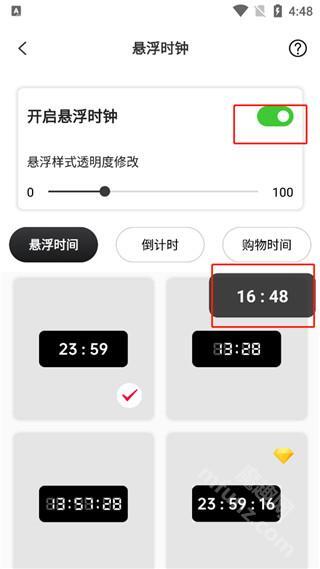 3、点击悬浮时钟,开启按钮后就能显示悬浮时间,另外还提供秒表时钟供您选用;