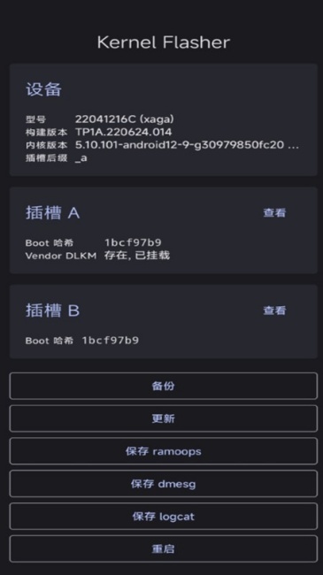 1、可实现内核的刷入、备份与恢复操作,兼容AK3格式的内核压缩包。