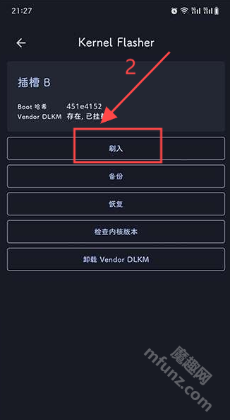 3、授权完成后插槽b处选择刷入功能