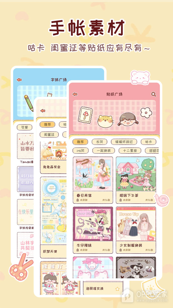 2、风格各异的贴纸、背景、画笔等素材会持续更新,以满足您在手账创作上的多样化需求。