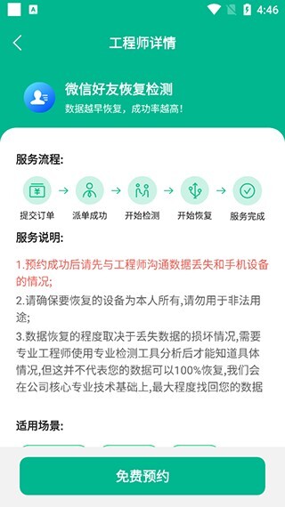 3、接下来用户便可以免费预约工程师沟通恢复问题;