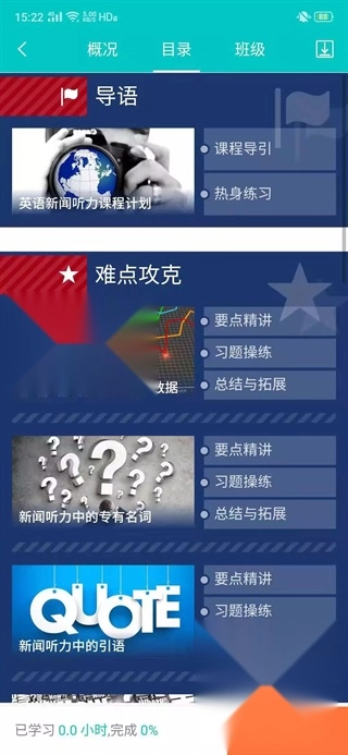 3.点击课程封面,就能查看课程目录、开始学习或者查看学习进度等详细信息。