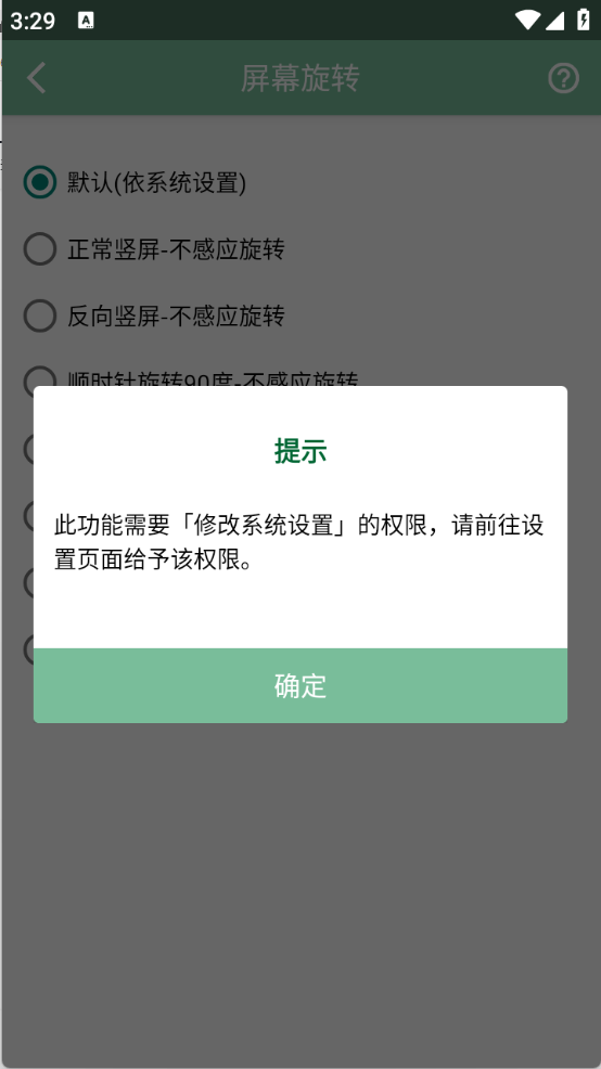 3、我选择的是“屏幕旋转”,在弹出的对话框中点击“确定”按钮。