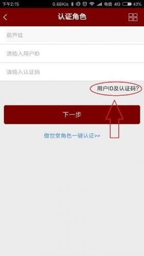 4、在这个界面中填写您的游戏用户ID与认证码,若不清楚相关信息,可点击“用户ID及认证码?”来查看游戏内用户ID的具体位置。