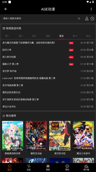 4、首页中间位置设有追番时间表,你可以通过选择日期,直观地知晓每天更新的动漫内容,使用起来十分便捷。