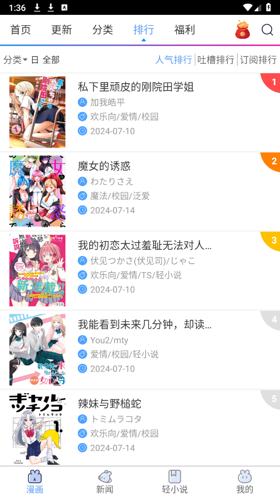 1、找到“轻小说”功能栏,点击进入后查找自己想要的小说。