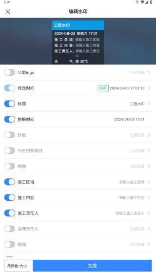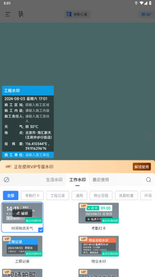 2、工程水印:这是专门用于记录工程工作的水印,能够标记工程所在地的位置信息,同时记录工程相关内容,支持一键启用,操作便捷又省心!