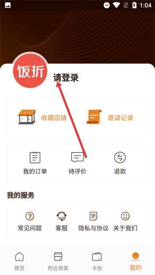 2、在饭折首页,点击底部导航栏中的“我的”选项,即可进入与个人功能相关的操作页面。