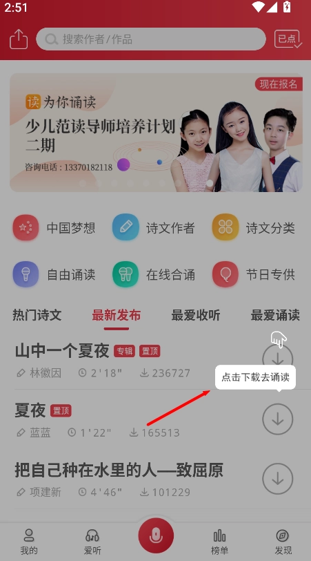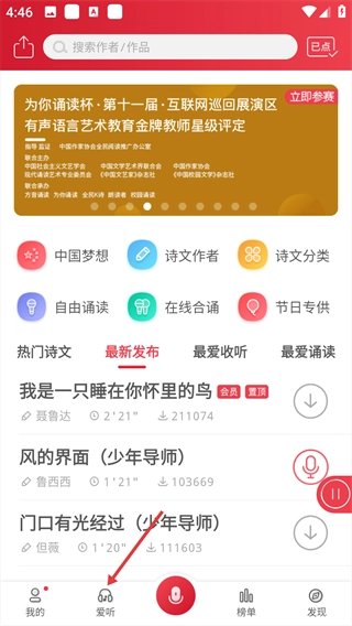 3、具备合诵互动功能,方便结识朗诵爱好者,一同开展诗词诵读内容的创作与交流。