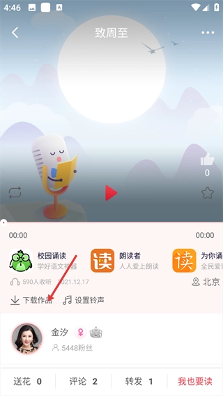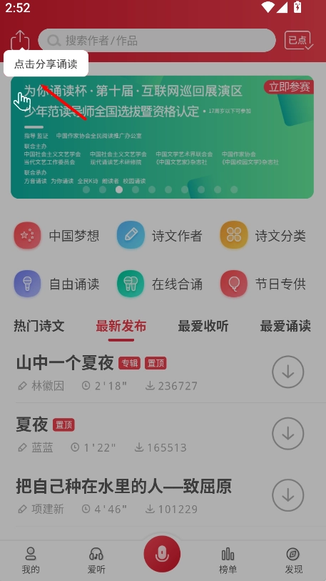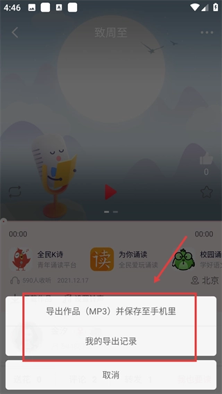 3、完成朗读后可将作品一键分享给好友。