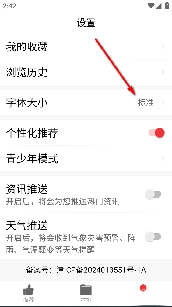 点击【字体大小】