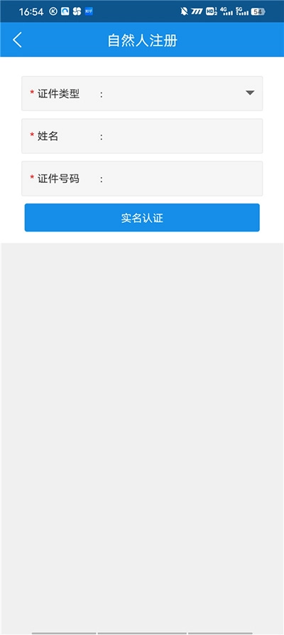 2、这里面包含个人用户和企业用户两种类型,我们选择个人新用户进行注册,接着挑选证件类型,填写证件号与姓名,之后点击实名认证按钮。