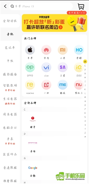 2、选择手机品牌。