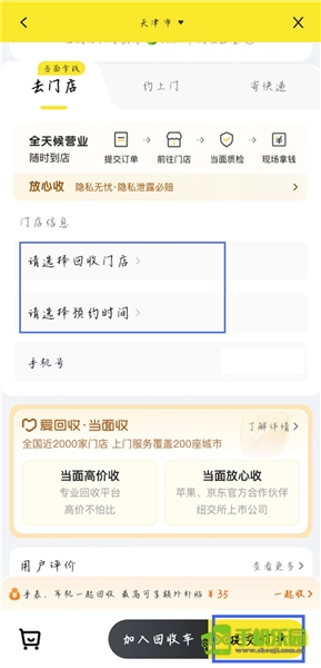6、接着选择回收门店和预约时间,点击【提交订单】就可以了。