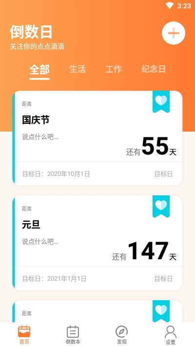 纪念日倒数日免费版是一款工具类应用,专注于记录并提醒生活里的重要日期。它凭借简洁直观的交互设计与丰富实用的功能,助力用户高效管理纪念日、生日、节日等各类时间节点,巧妙兼顾了实用性与仪式感。这款软件提供两种记录方式:正向计时的日子和倒计时的日子。既能展示“恋爱已度过XX天”这样的累计时长,也能设置“距离考试还有XX天”的倒计时提醒,可满足不同场景下的使用需求,确实十分实用!