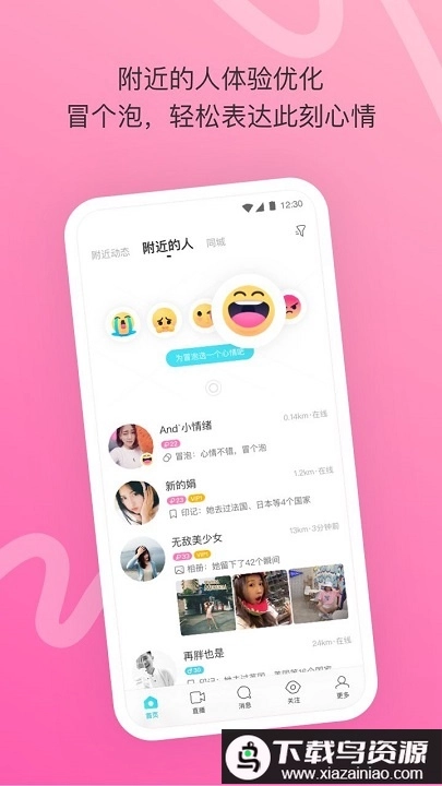 momo陌陌是一款结合了地理位置服务的社交娱乐平台,在这个应用里,你可以借助发布短视频或者参与直播的方式来鲜活地展现自己;还能便捷地找到并认识附近的人;加入周边的兴趣社群;查看附近的留言板;也能参与本地的各类活动,同时应用还支持和朋友分享实时位置,并且可以用有趣的表情来进行聊天互动。