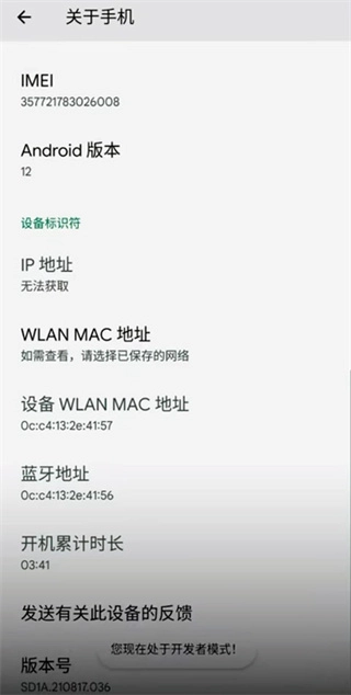 3、然后在开发者选项当中找到“关于手机”连点7次“版本号”即可开启开发者选项。