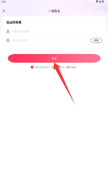 2、先在登录页面填写手机号与短信验证码,接着勾选同意相关条款,之后点击登录按钮即可进入系统。