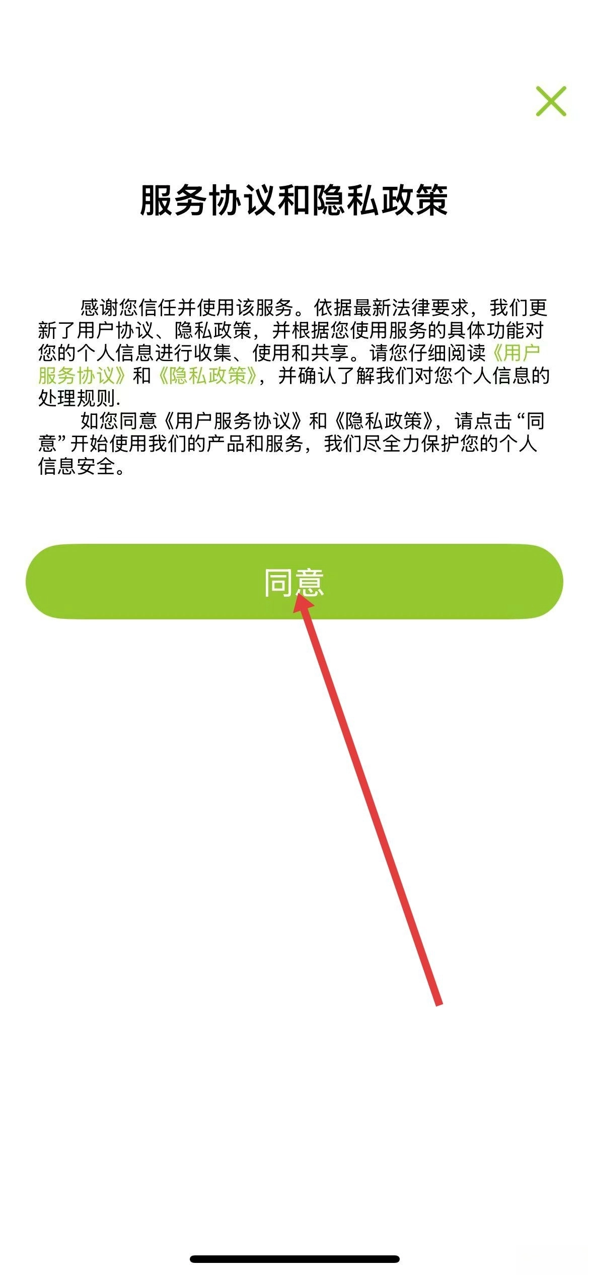 1、进入软件之后,会跳出服务协议,需要认真阅读软件给出的建议后点击同意并继续下一步。