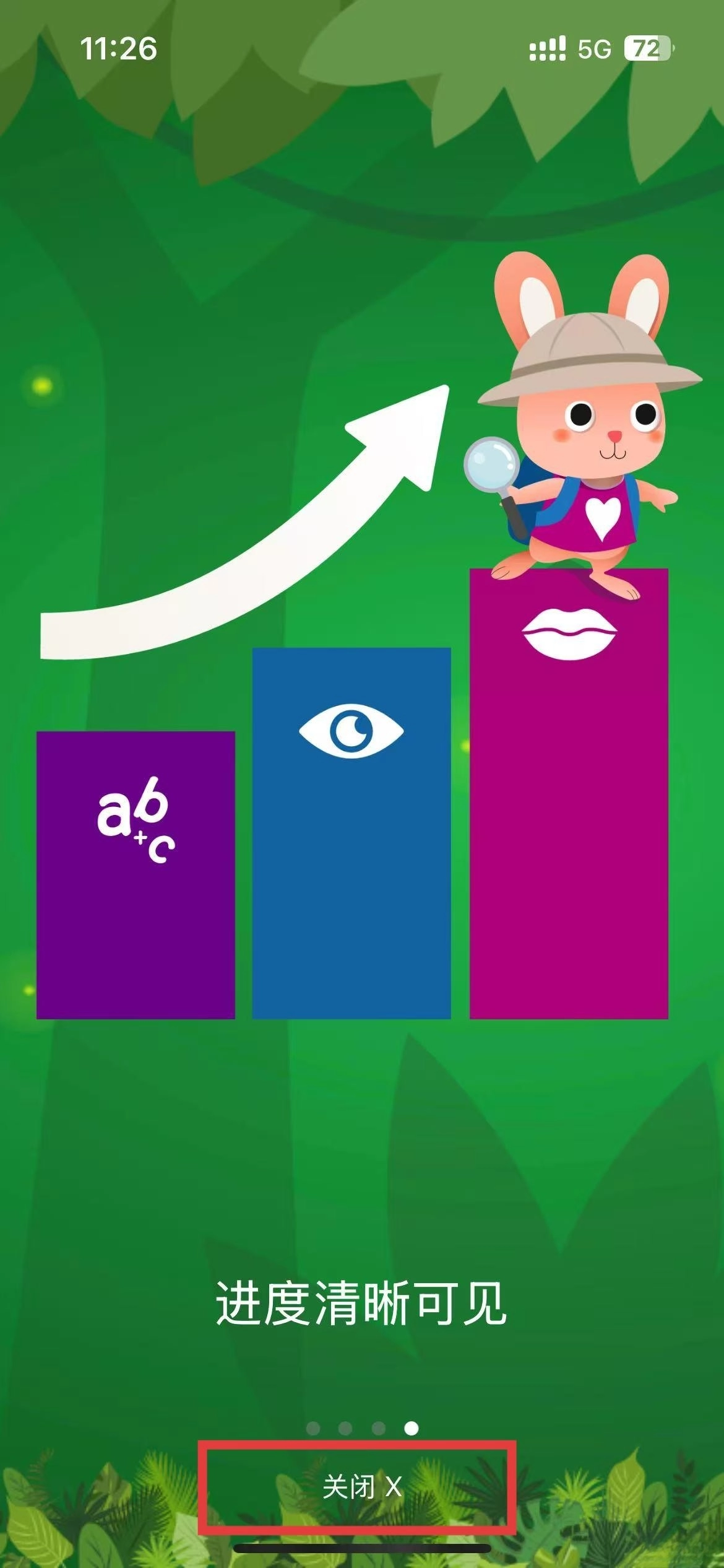 2、进入该界面后,按照箭头的提示,将目光移至下方,点击关闭按钮,即可跳转至下一个界面。