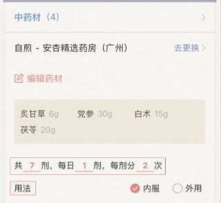 ● 已添加的药材支持删除与修改操作,且同一种药材不可重复添加。