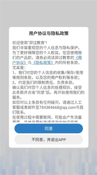 1. 首先在应用商店找到羿过教育,查看其中的用户协议和隐私政策。