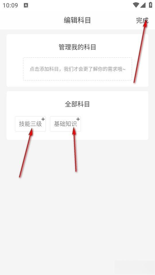 接下来我们可以选择编辑并管理自己的科目,选择科目即可进入自己的选择区域,点击右上角完成。