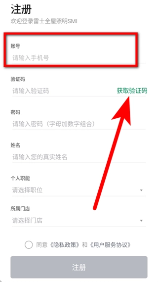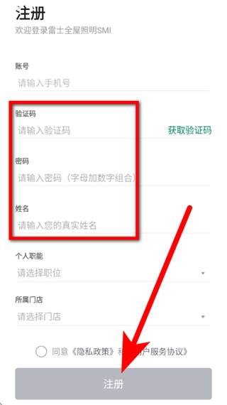 4、填写验证码、设置密码等信息,勾选同意相关协议后,点击注册按钮,即可完成账号创建。