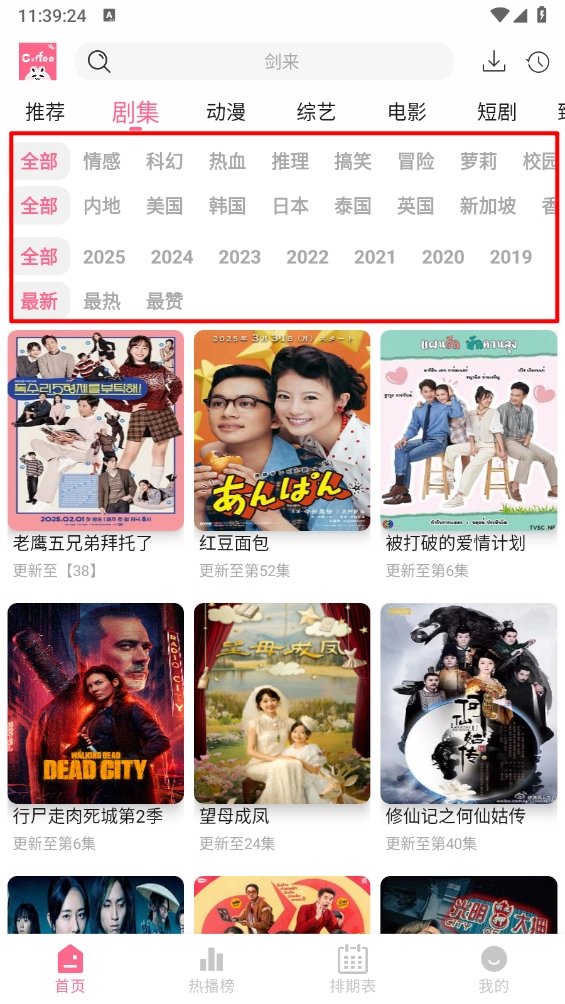 1、启动coffee4k软件,进入首页后,可通过标签、年限等筛选条件,查找自己喜欢的剧集。