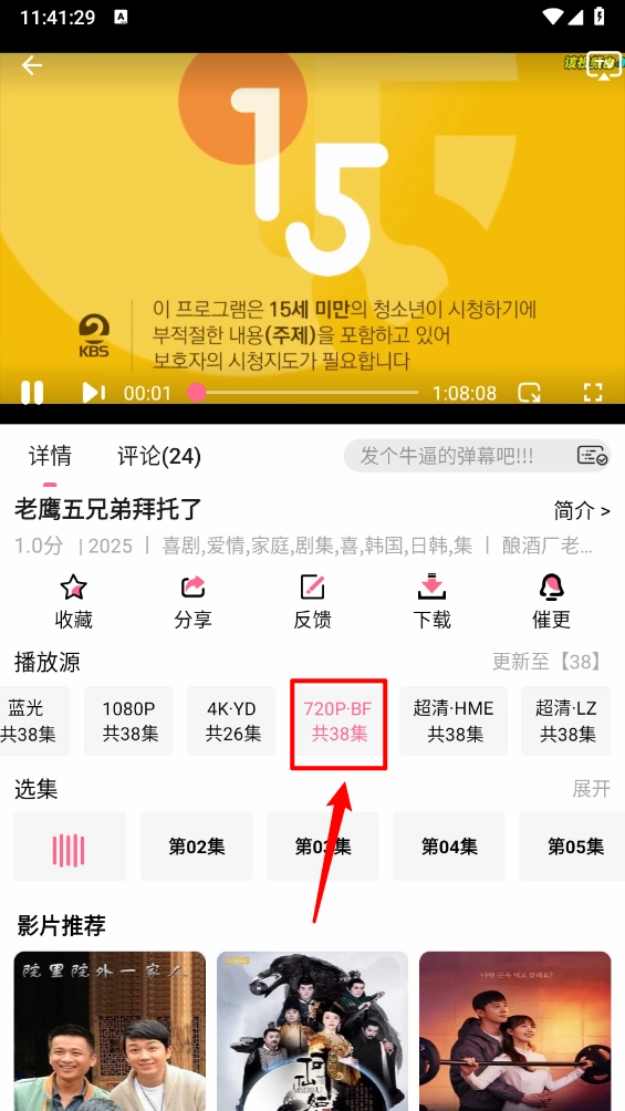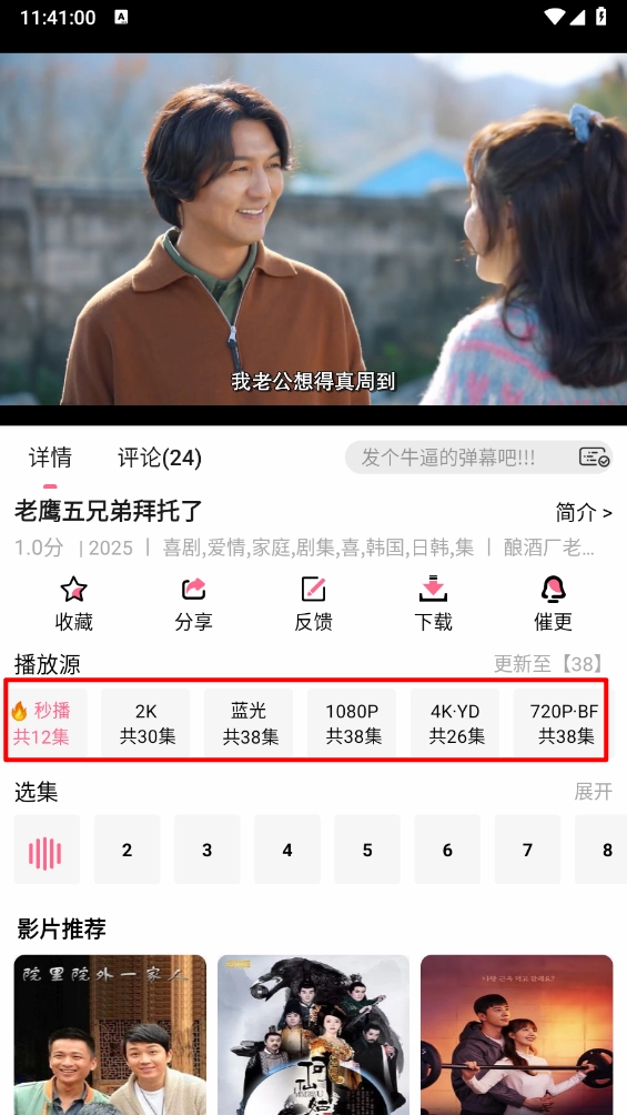 2、一键进入播放详情页,如图,涵盖多个播放源。