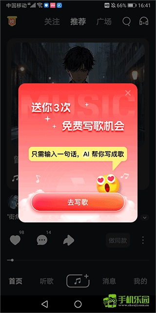 1、新用户登录后就有免费使用次数进行ai写歌