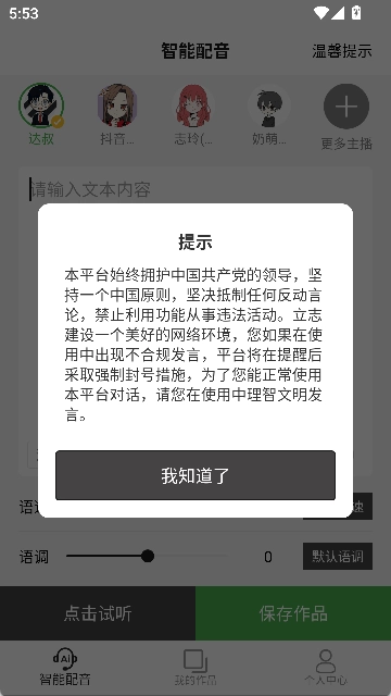 主播的声音选项十分丰富,能够匹配各类不同场景的声音需求。